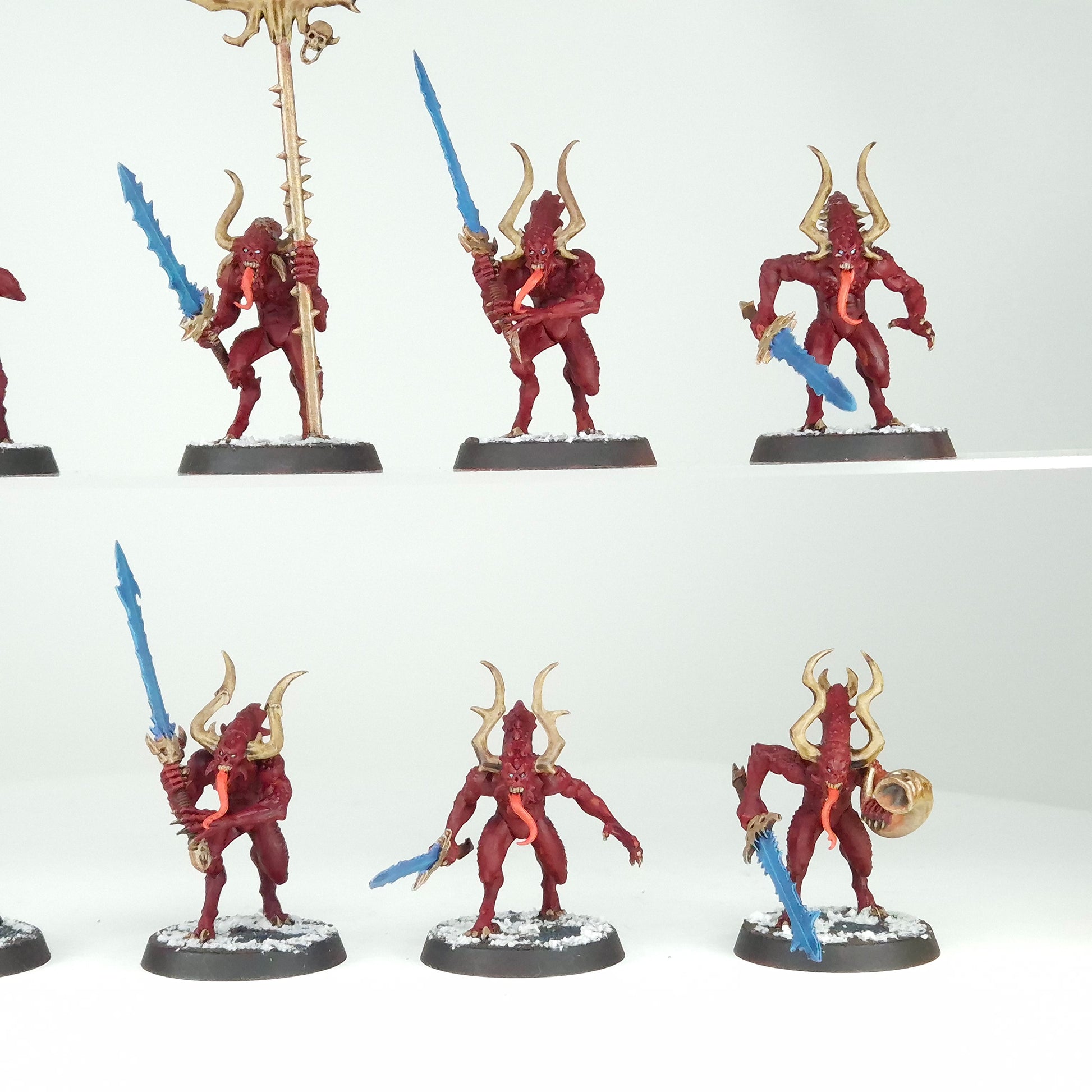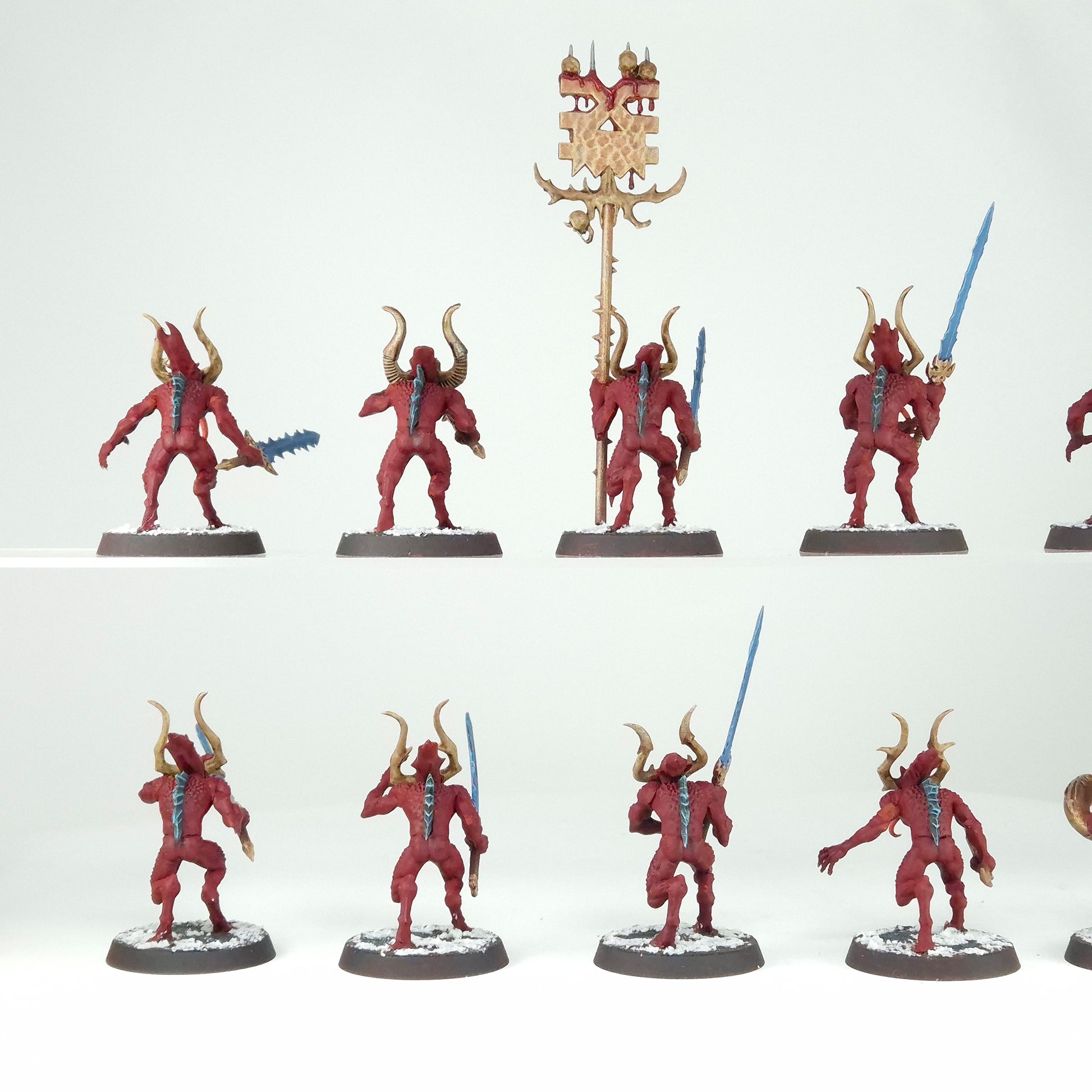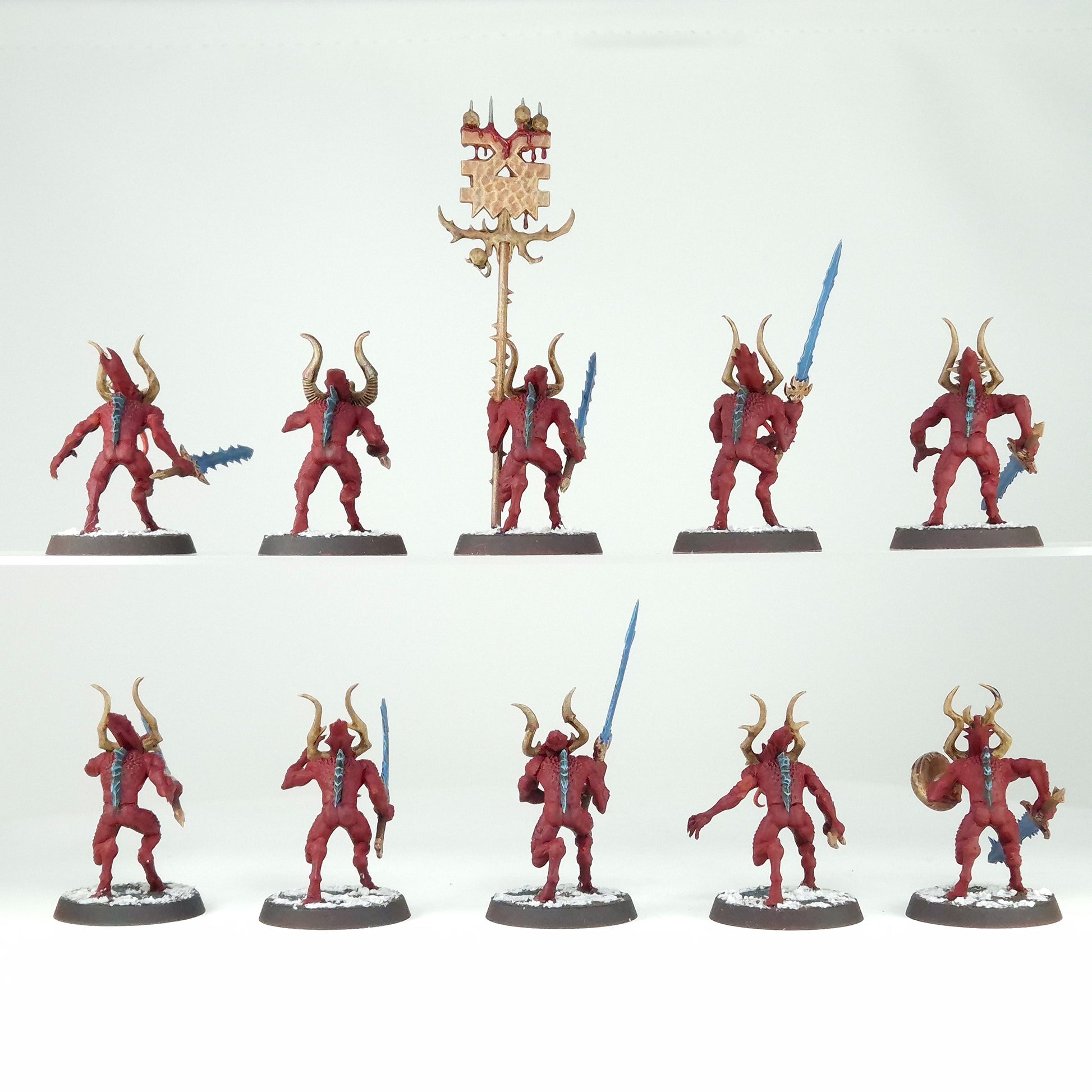 A squad of ten Khorne Bloodletters painted to a tabletop standard. A classic daemonic unit ideal for summoning or use alongside World Eaters forces.