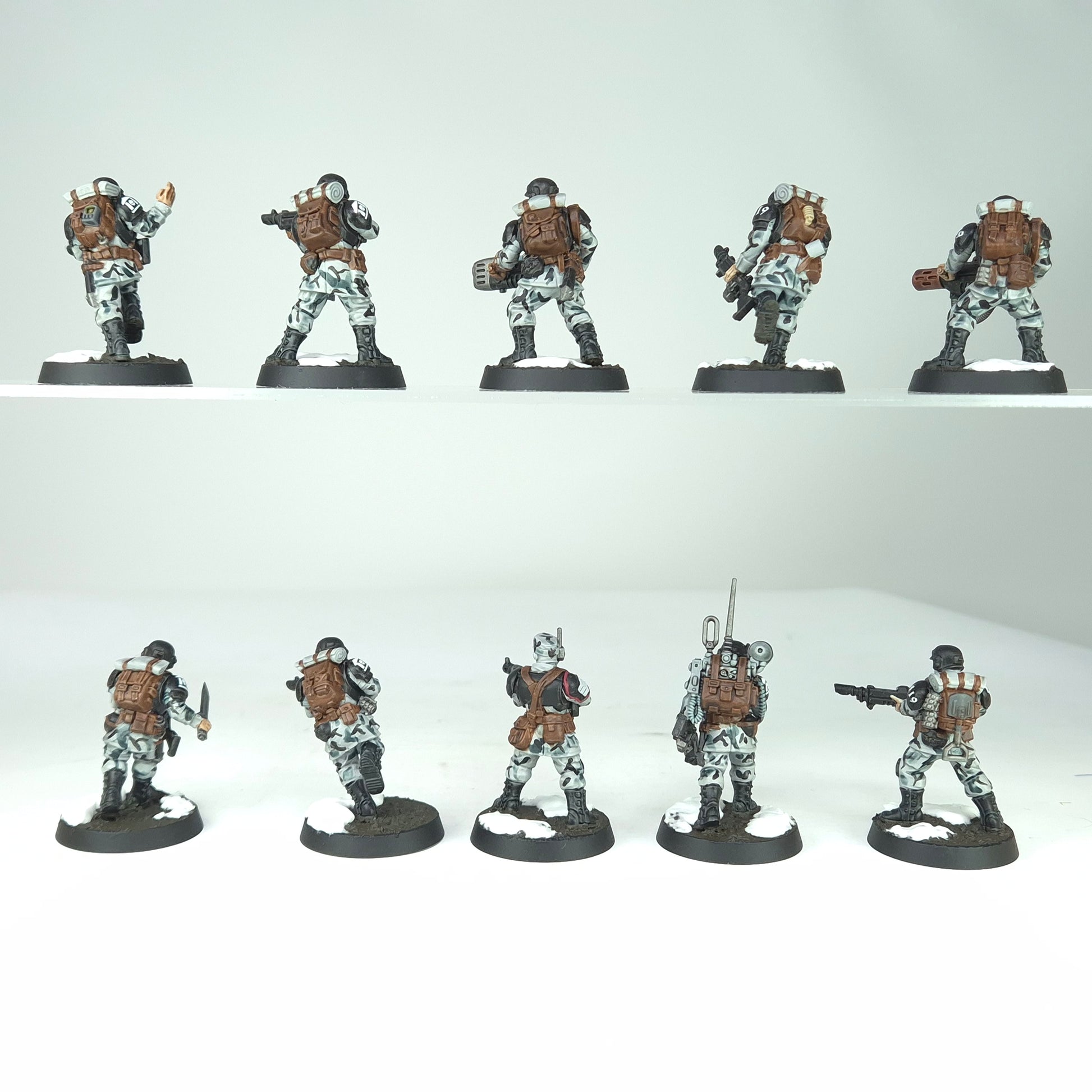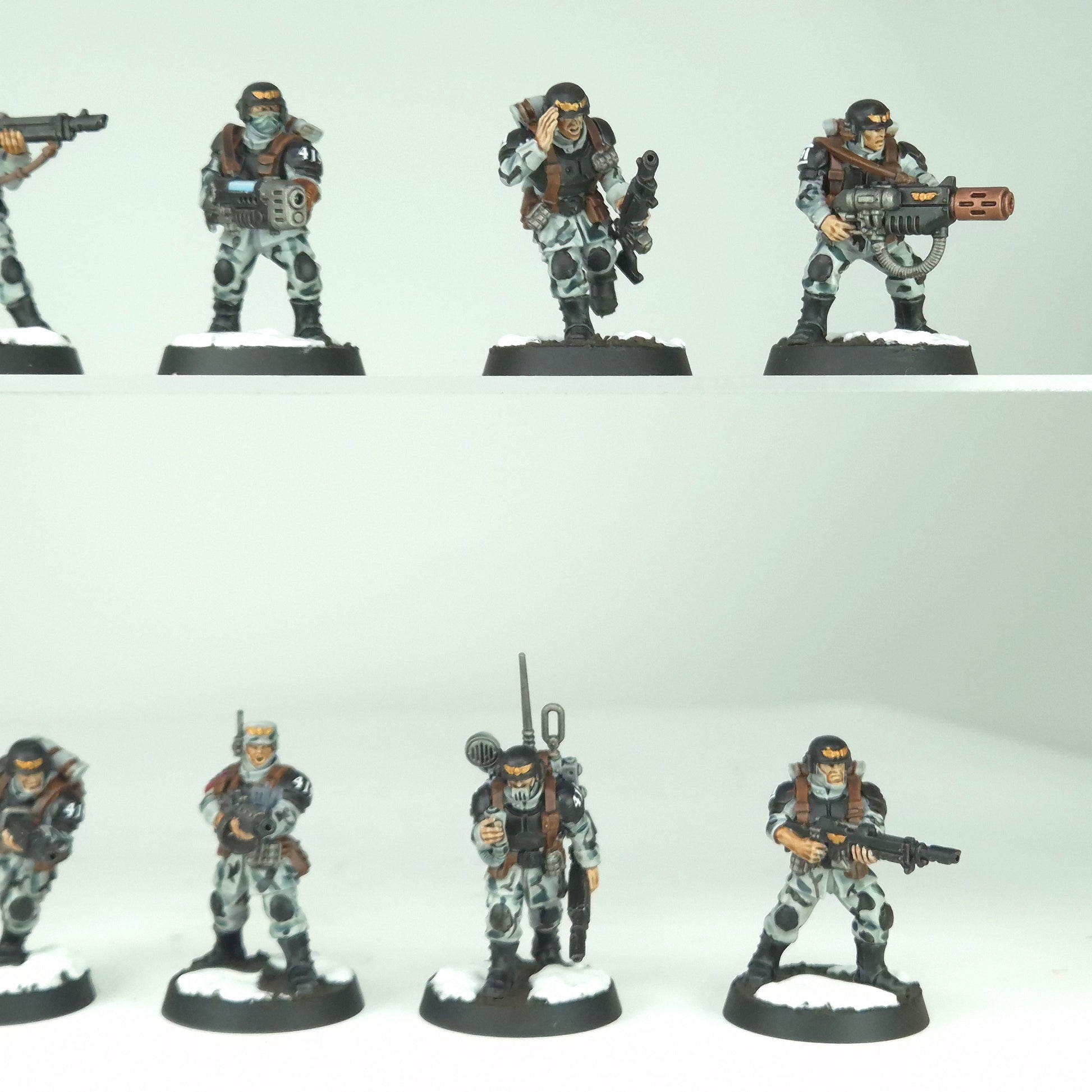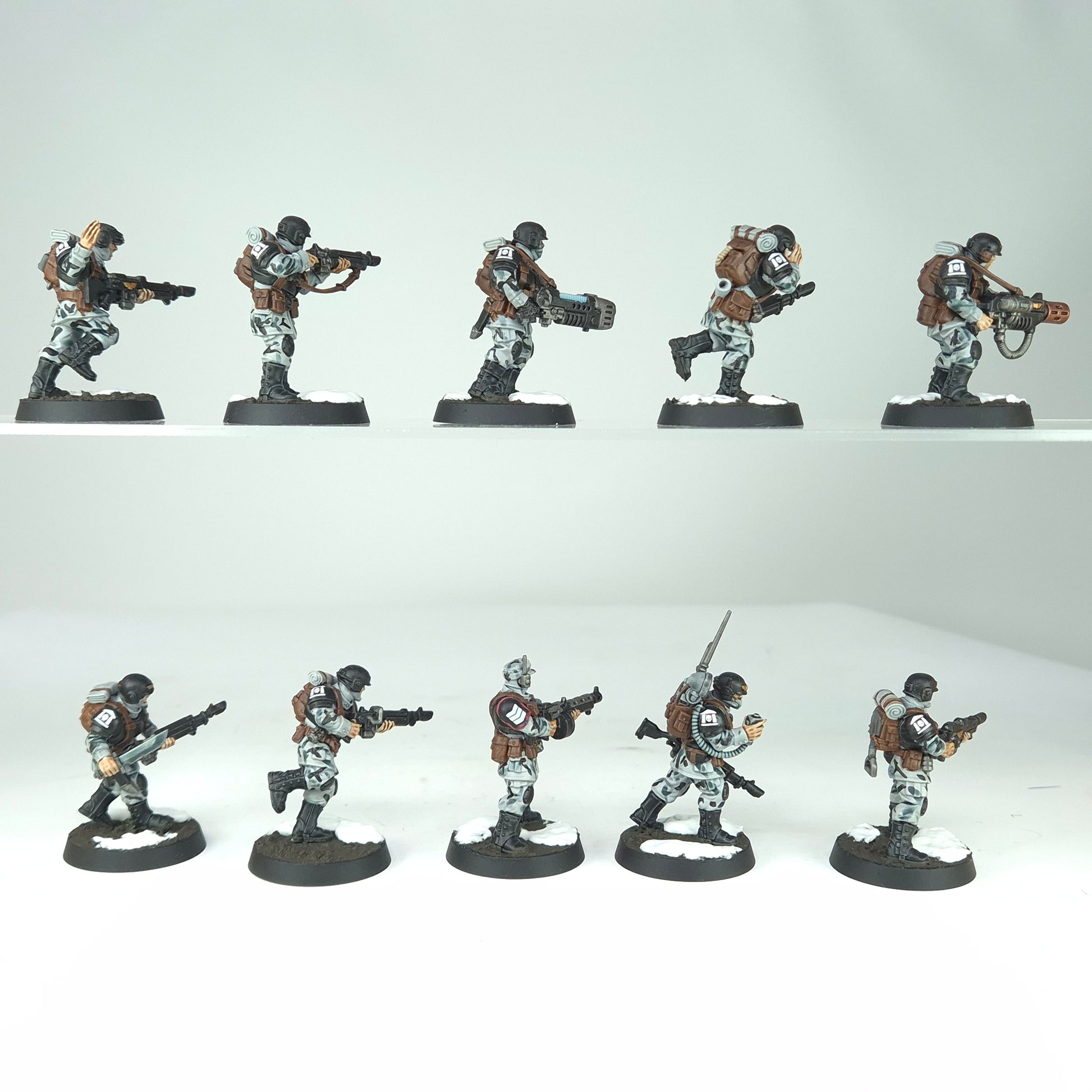 Cadian Shock Trooper Squad painted to a tabletop standard. Fully painted and ready for deployment as the reliable core infantry of the Astra Militarum.