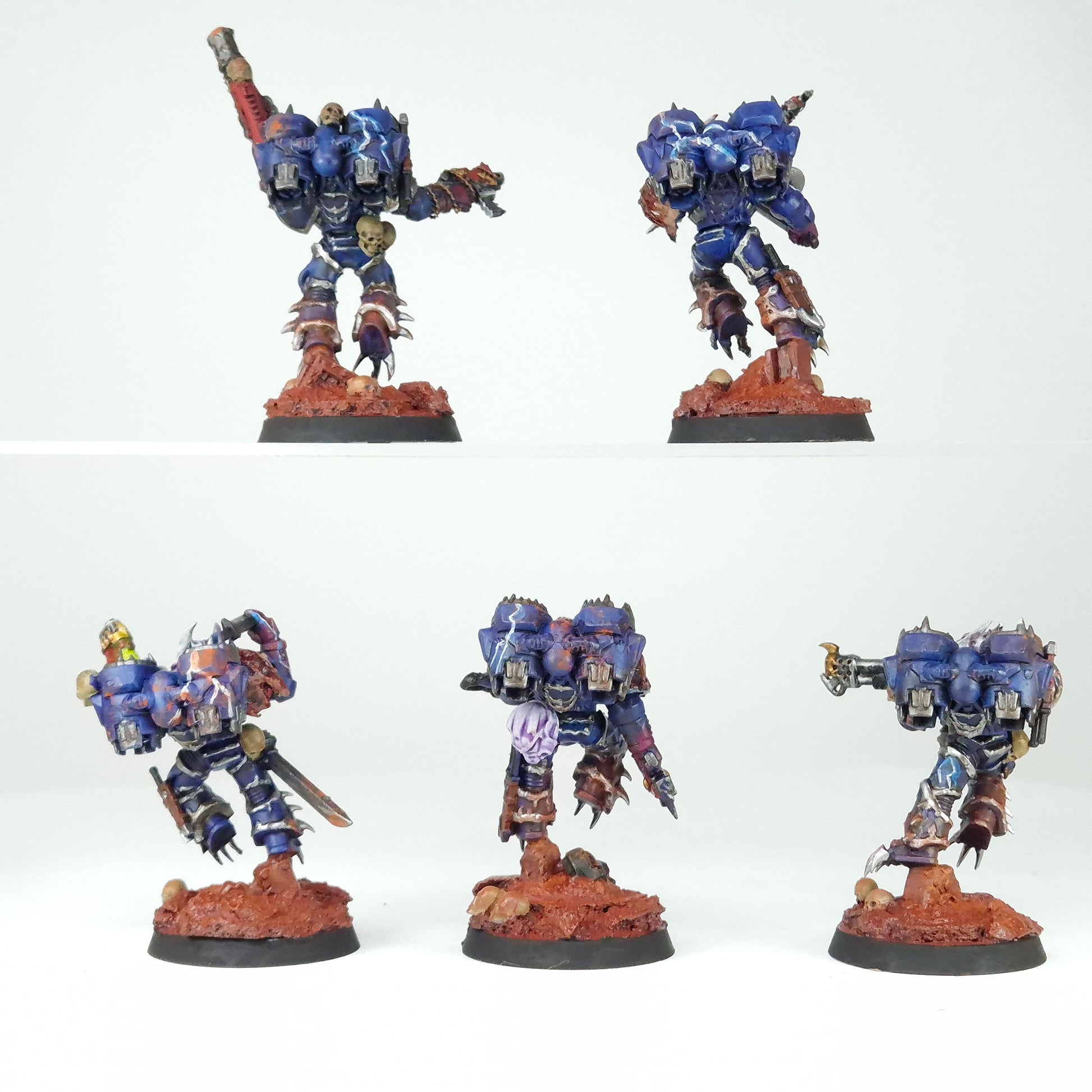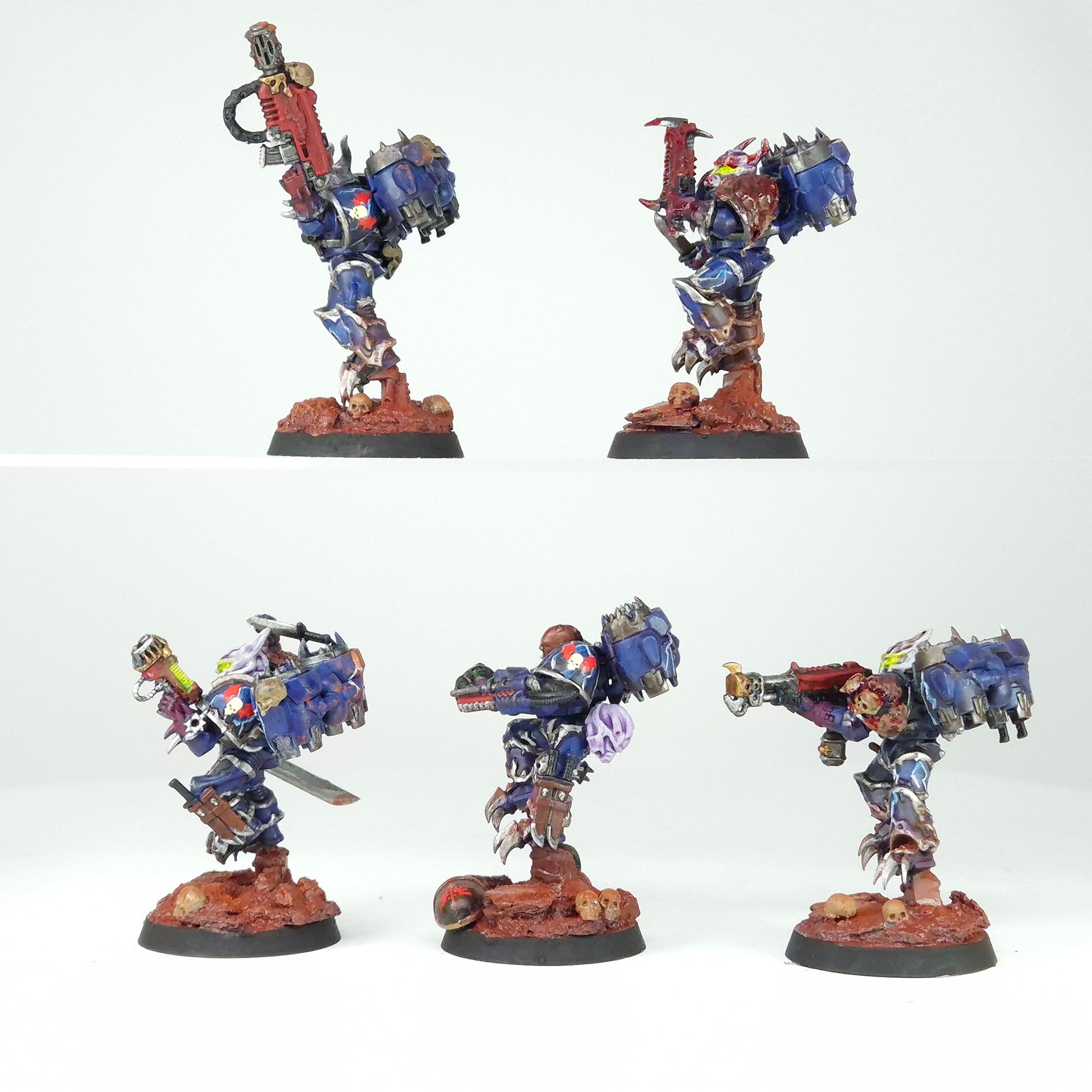 A squad of Chaos Raptors painted to a decent tabletop standard in Night Lords colours. The dark armour, jump packs, and weapon detail give the unit a savage, fast-attack aesthetic true to their terror-tactics theme.