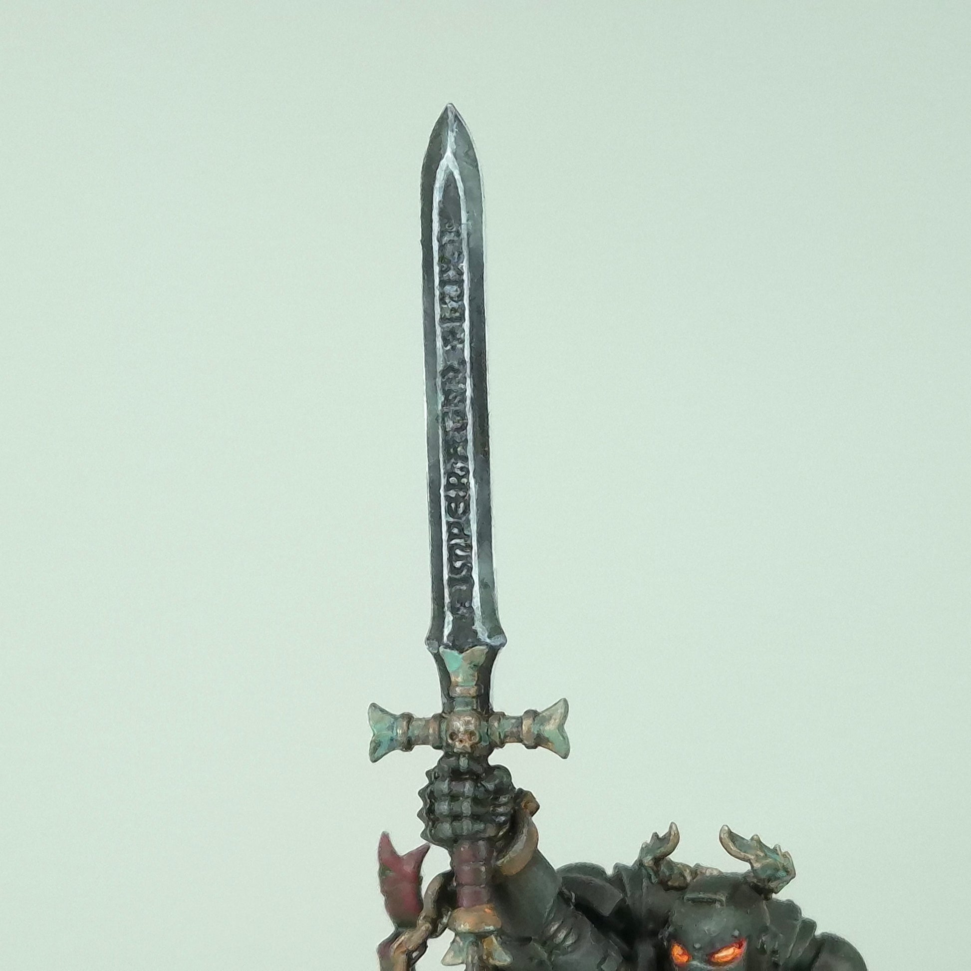 Emperor’s Champion painted to a decent tabletop level in a grimdark style. A characterful and iconic miniature that stands out within any Black Templars collection.