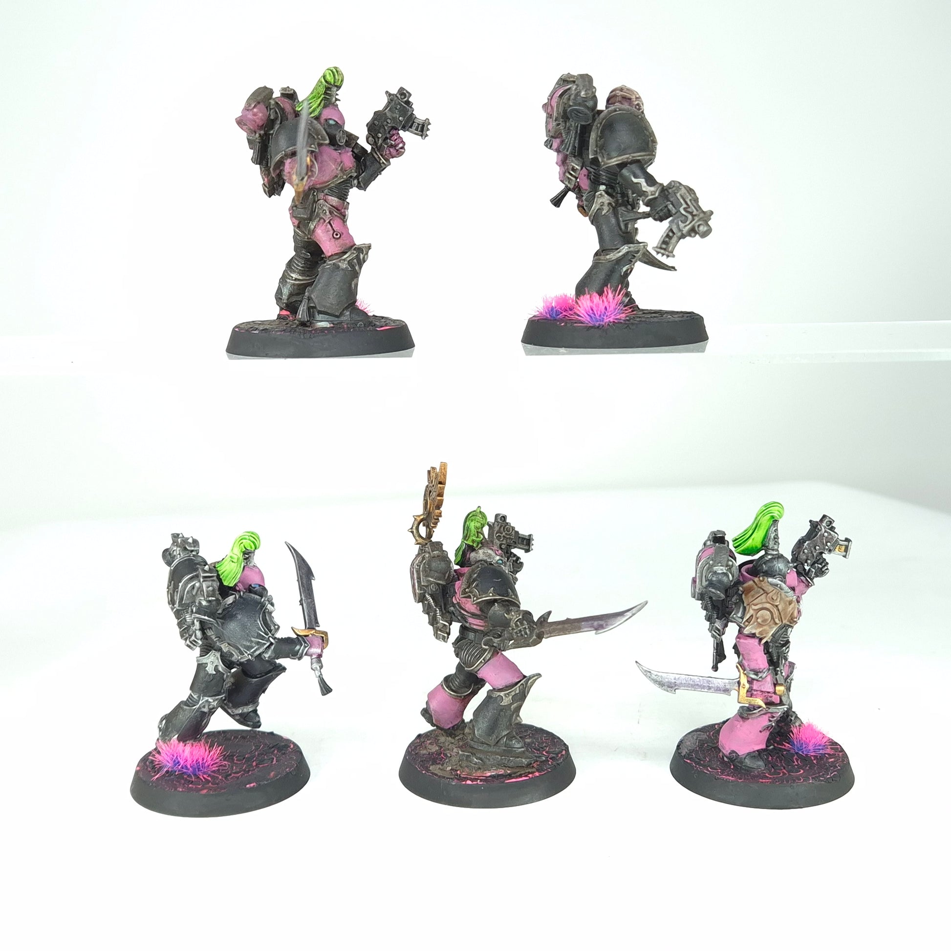 A unit of five Infractors painted to a tabletop standard in Emperor’s Children colours. Fully assembled and finished in a cohesive scheme, ready to bring close-range aggression to a Chaos force.