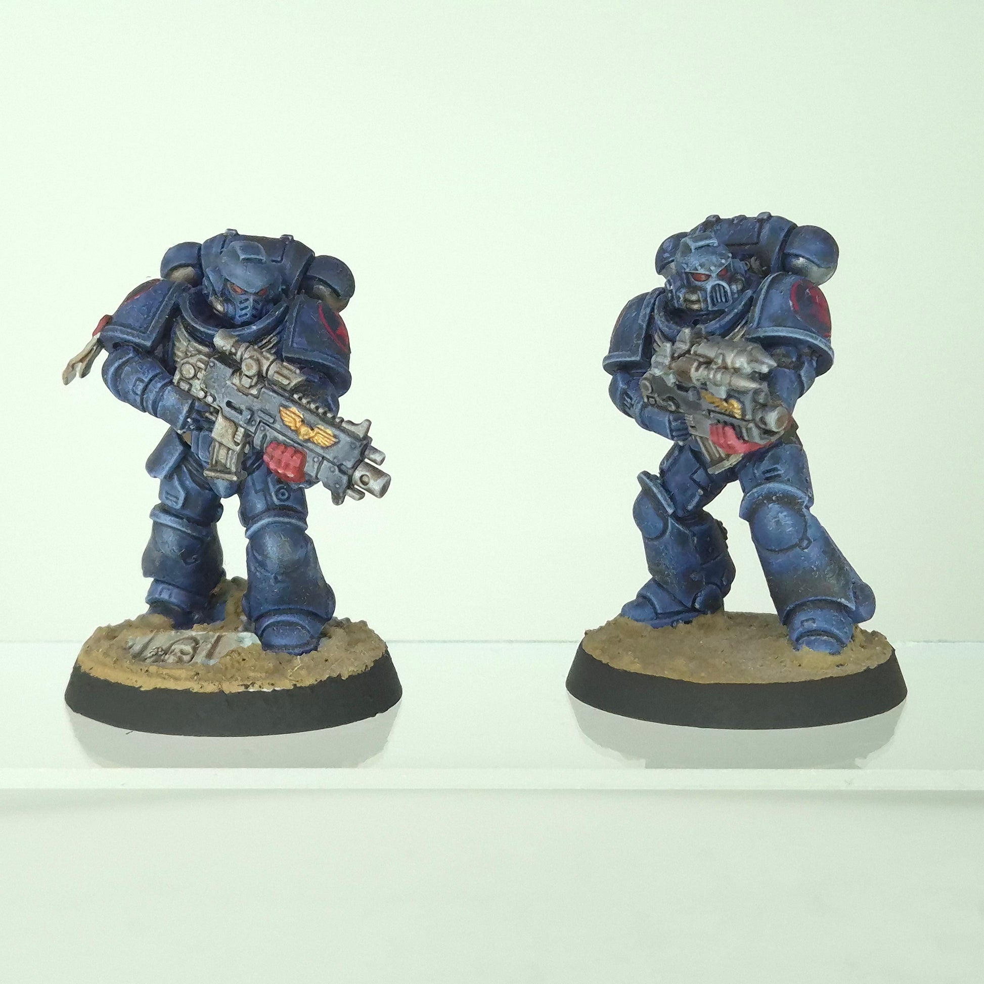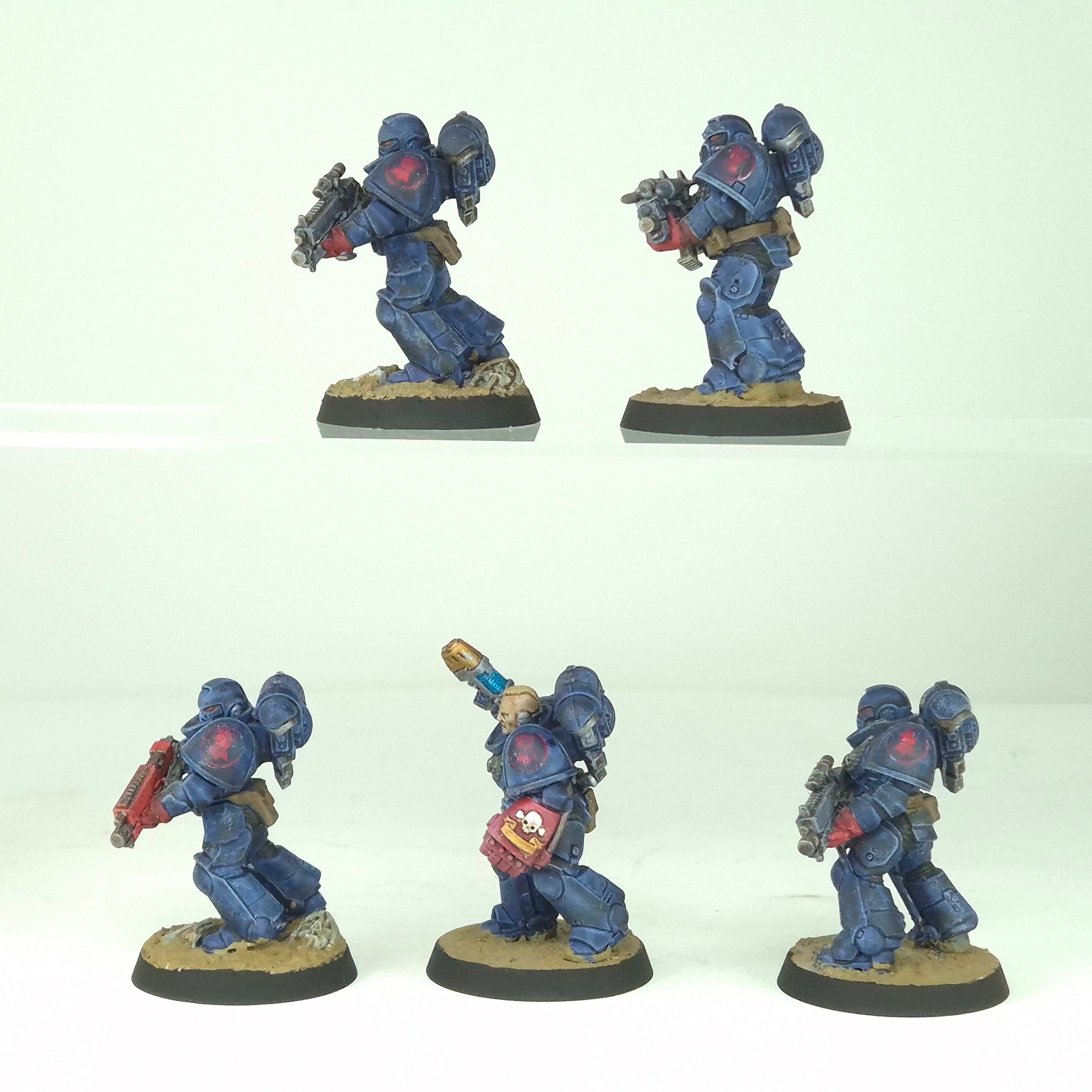Crimson Fists Primaris Intercessors painted to a tabletop standard. Fully assembled and painted, ready for tabletop play.